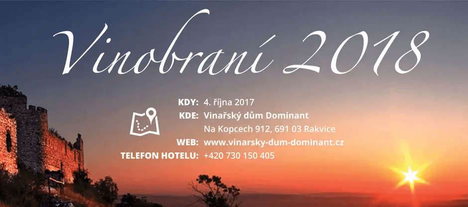 Přijměte naše pozvání na Vinobraní 2018 dne 4. října 2018. Můžete se těšit na školení, dobré víno, jídlo a volnou zábavu s "cimbálovkou". Těšíme se na Vás.